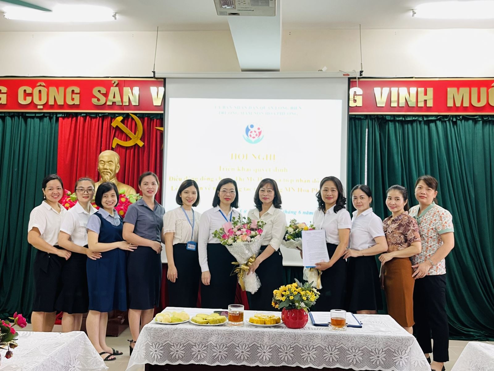 Ngày 23/06/2022, Trường mầm non Hoa Phượng long trọng tổ chức Hội nghị "Triển khai quyết định điều động đồng chí Lê Thị Mỹ Hạnh và tiếp nhận đồng chí Lê Thị Yến về nhận công tác tại trường mầm non Hoa Phượng. Trong buổi Hội nghị này rất vinh dự được đón 2 đồng chí lãnh đạo phòng nội vụ: