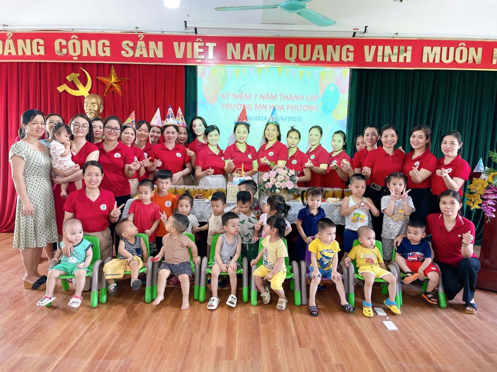 Sáng ngày 3/6/2023, tập thể nhà trường đã tổ chức mittinh kỷ niệm 7 năm thành lập trường. Tập thể CBGVNV trường mầm non Hoa Phượng đã hân hoan cùng nhau thổi nến chúc mừng. Chúc cho tập thể CBGVNV và học sinh nhà trường luôn mạnh khỏe và tiếp tục đạt được những thành tích cao trong những năm tiếp theo.