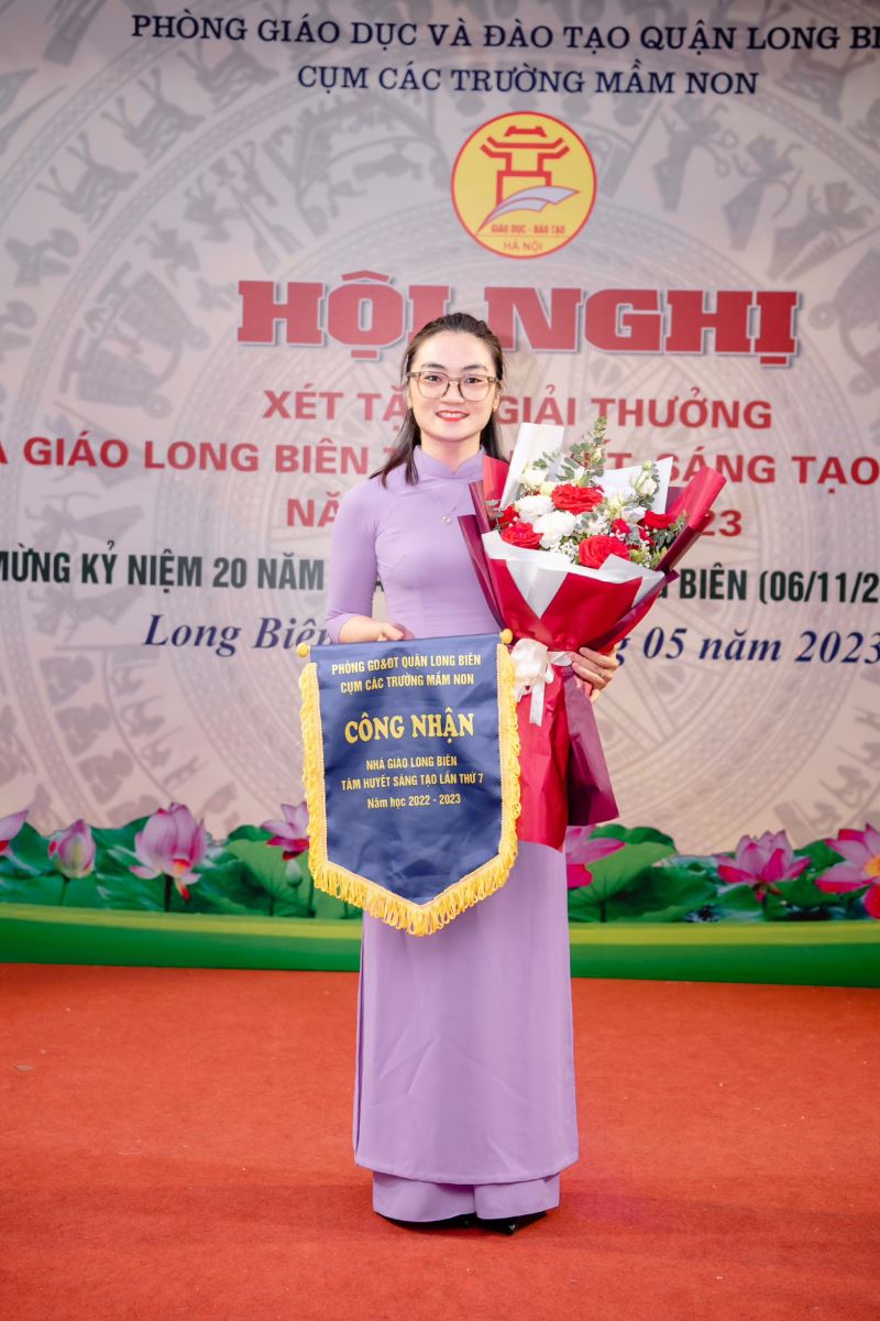 Thật vinh dự và tự hào, trường Mầm Non Hoa Phượng có cô giáo Dương Thị Thu Trang được công nhận danh hiệu "Nhà giáo Long Biên tâm huyết sáng tạo" cấp cụm trong Hội nghị nhà giáo Long Biên tâm huyết sáng tạo lần thứ 7 năm học 2022-2023. Cô giáo Thu Trang là giáo viên trẻ, tâm huyết, sáng tạo. Cô luôn hoàn thành xuất sắc công việc được giao trên cương vị Tổ trưởng chuyên môn - Bí thư chi đoàn.