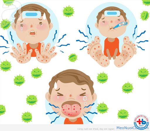 - Qua tiếp xúc giữa trẻ em với nhau hoặc tiếp suc với đồ chơi, bàn ghế, sàn nhà... bị nhiễm vi rút.