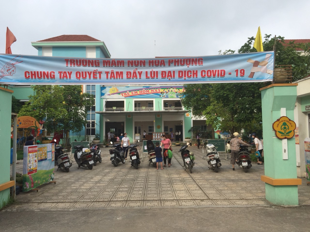 Nhà trường đã thực hiện đúng theo chỉ thị của Thủ tướng chính phủ, tổ chức đón trẻ và làm tốt công tác phòng, chống dịch bệnh.