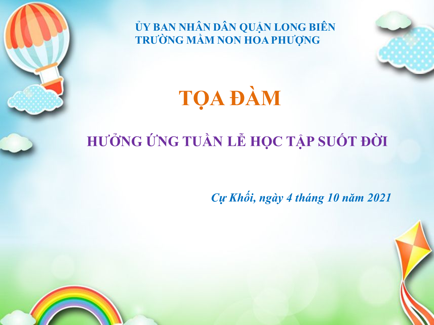 Nằm trong những hoạt động của “Tuần lễ học tập suốt đời”, tối ngày 4/10/2021, trường mầm non Hoa Phượng tổ chức buổi Tạo đàm “Tuần lễ học tập suốt đời”