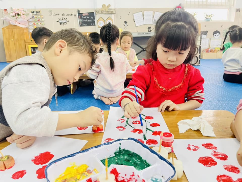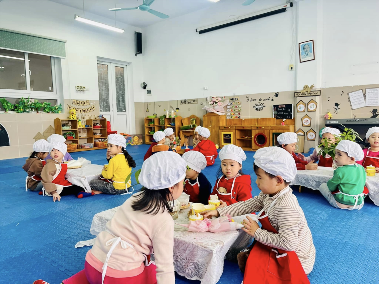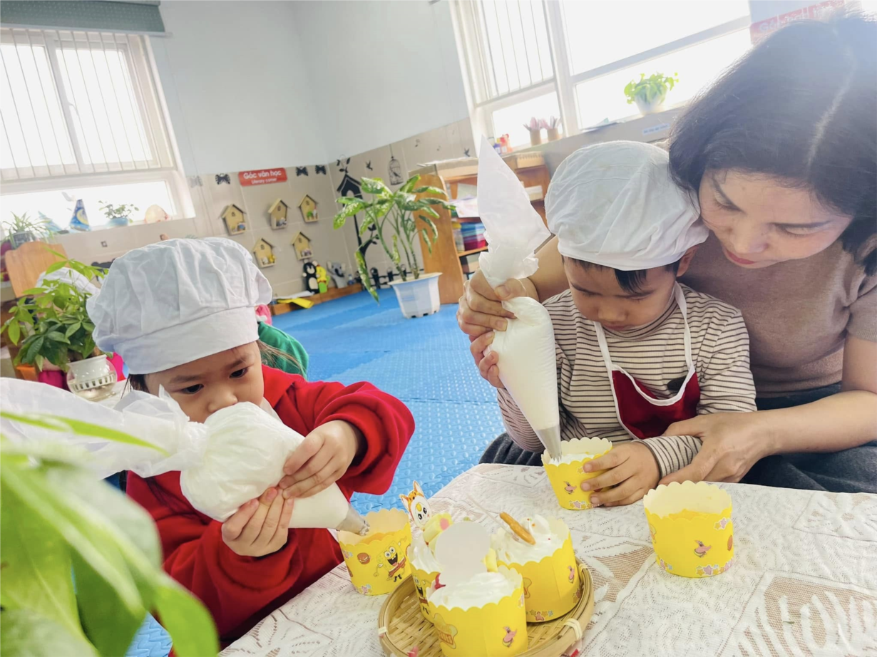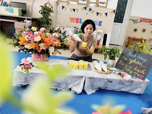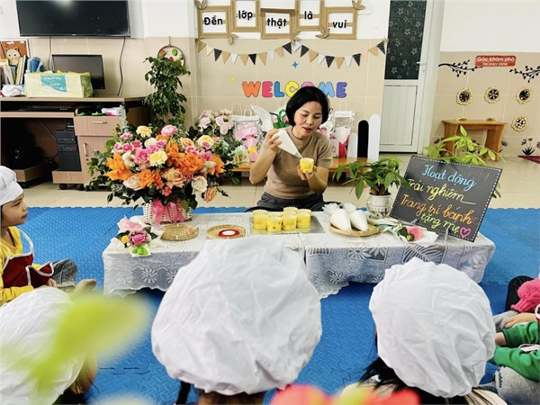 Lớp B1 trang trí bánh tặng mẹ 8/3