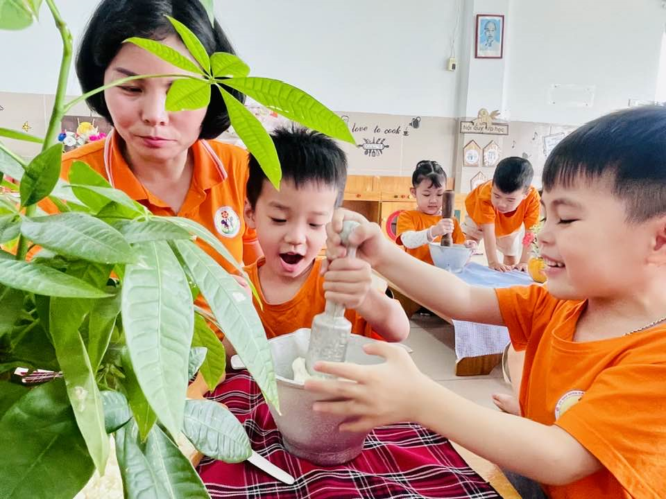 Thu hoạch bưởi của các bé trường mầm non Hoa Phượng