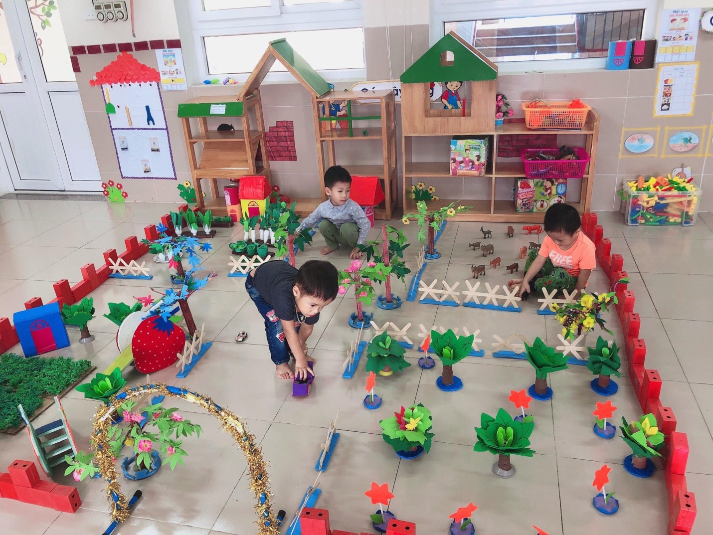 Hoạt động góc trong trường mầm non là phương tiện phát triển toàn diện về đạo đức, trí tuệ, thẩm mĩ, thể chất. Trẻ em đến trường không chỉ cần được chăm sóc sức khỏe được học tập mà quan trọng nhất là được vui chơi… không những thế thông qua các hoạt động góc hằng ngày giúp trẻ chia sẻ niềm vui của mình với bạn bè, cộng đồng làm cho thế giới xung quanh của các bé đẹp hơn và rộng lớn hơn. Vui chơi là hoạt động chủ đạo của trẻ mầm non, vì vậy các giáo viên mầm non cần sắp xếp và tổ chức một cách khoa học để lôi cuốn trẻ tham gia hoạt động. Chúng ta cùng tham gia hoạt động góc với các bé lớp Mẫu giáo bé C3 nhé!