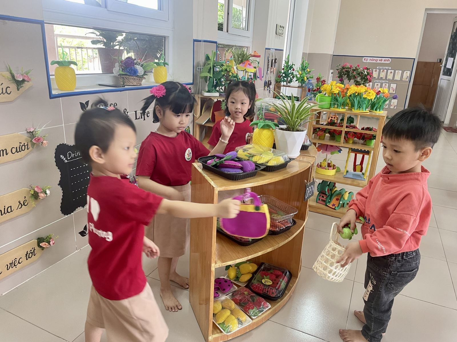 Không những thế, thông qua các hoạt động chơi góc hàng ngày còn giúp trẻ chia sẻ niềm vui của mình với bạn bè, cộng đồng, làm cho thế giới xung quanh của các bé đẹp hơn và rộng lớn hơn, tuổi thơ của các em sẽ trở thành những kỷ niệm quý báu theo suốt cuộc đời, làm giàu nguồn tình cảm và trí tuệ cho các bé