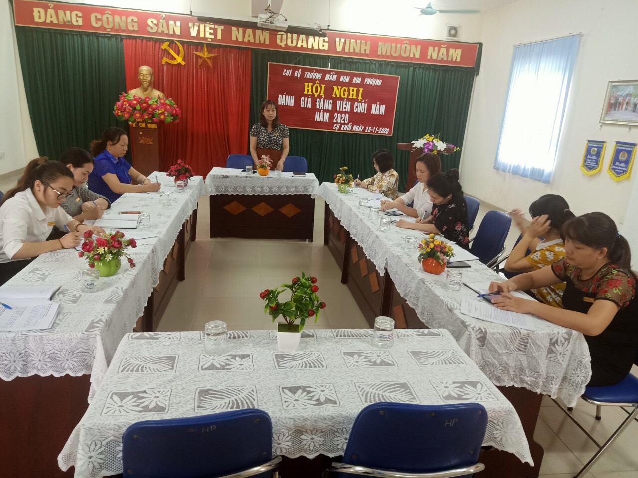 Thực hiện Kế hoạch số 10 /KH-ĐU ngày 21/11/2020 của Đảng ủy phường Cự Khối về việc Đánh giá chất lượng Đảng viên và Chi bộ năm 2020, chiều ngày 26/11/2020, Chi bộ trường Mầm non Hoa Phượng đã tổ chức “Hội nghị đánh giá chất lượng Đảng viên và Chi bộ đảng năm 2020”