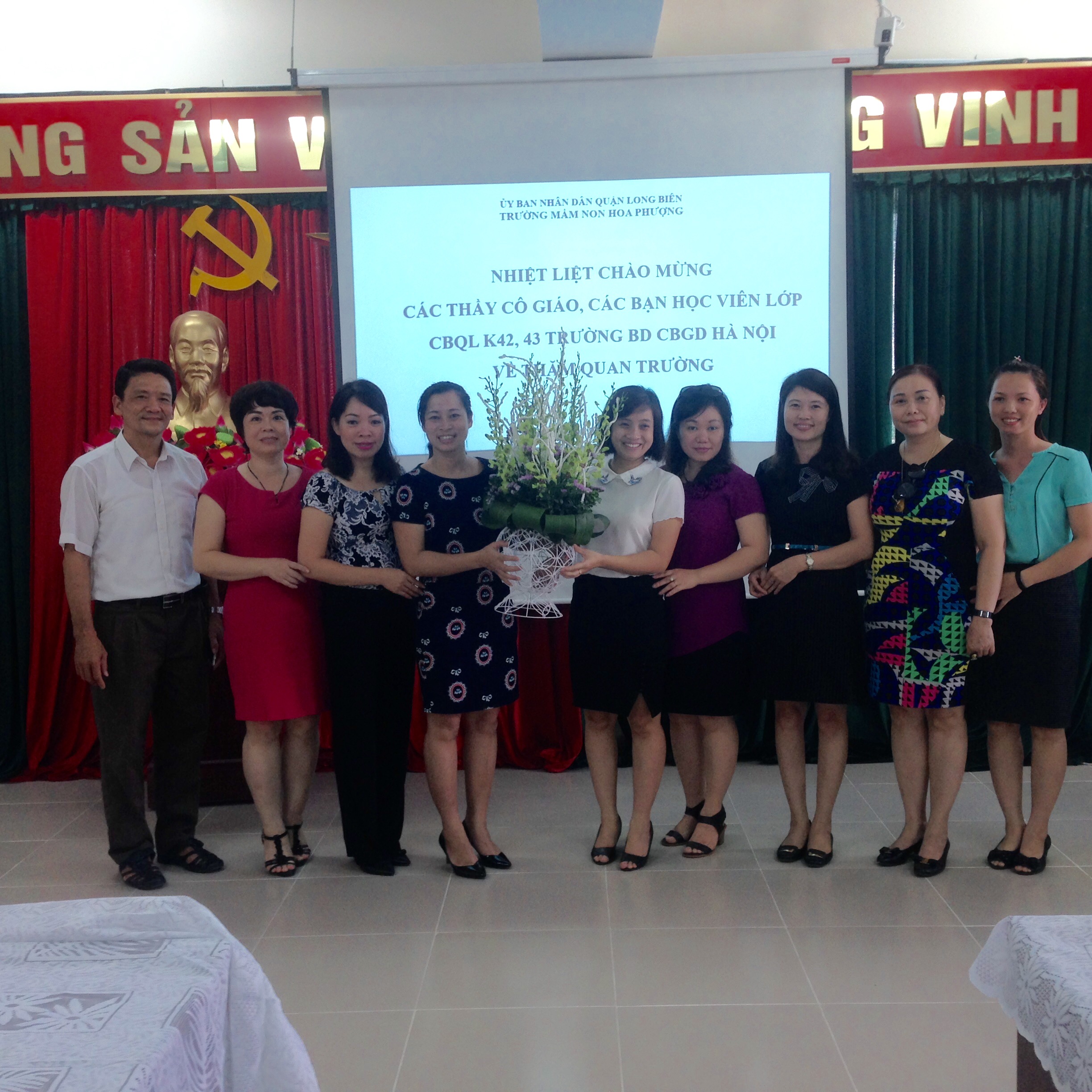 Sáng ngày 26/10/2016; trường MN Hoa Phượng vinh dự được đón đoàn các thầy cô giáo, các bạn học viên lớp CBQL K42, 43của trường Bồi dưỡng CBGD Hà Nội về thăm quan trường.