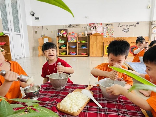 Tập ảnh : Hoạt động trải nghiệm ' Làm bánh giày" B1