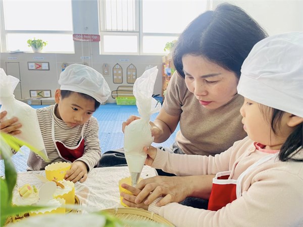 Tập ảnh : Lớp B1 trang trí bánh tặng mẹ 8/3
