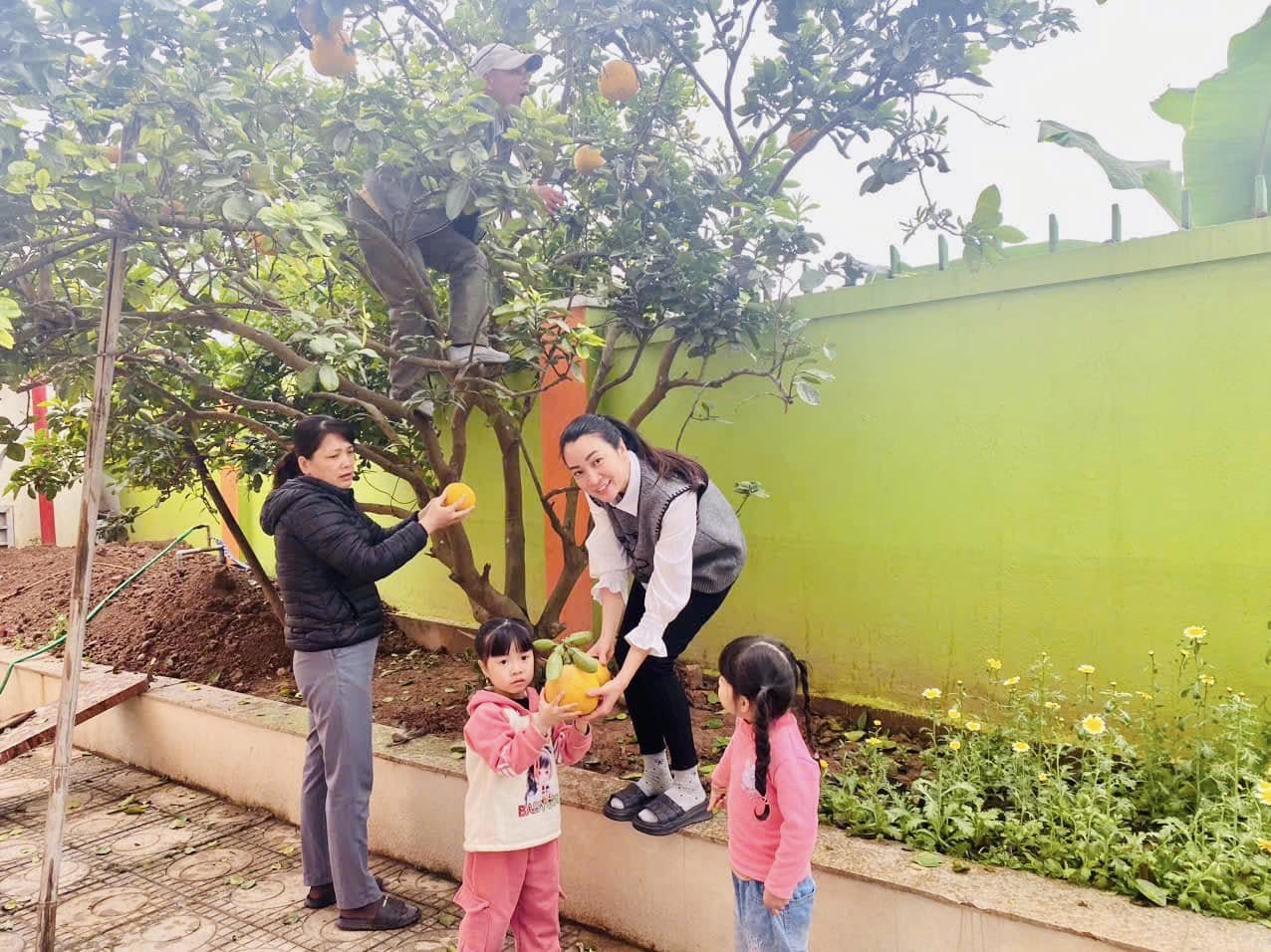 Các bé không chỉ được tận tay chạm vào những trái bưởi căng tròn, thơm mát mà còn học cách quan sát màu sắc, hình dáng của quả chín, tìm hiểu về quá trình phát triển của cây bưởi. Niềm vui hiện rõ trên khuôn mặt các con khi được cô giáo hướng dẫn cách hái bưởi và cùng nhau thưởng thức hương vị ngọt mát từ chính những trái bưởi trong vườn trường.