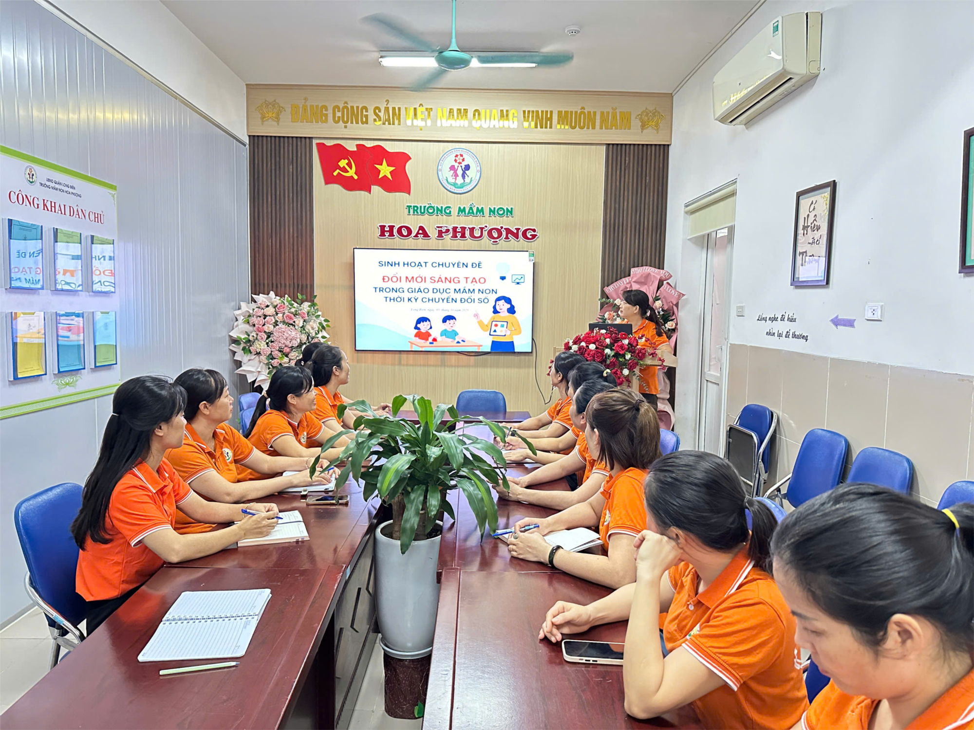 Chiều ngày 03/10/2025, trường MN Hoa Phượng tổ chức buổi sinh hoạt chuyên đề Đổi mới sáng tạo trong