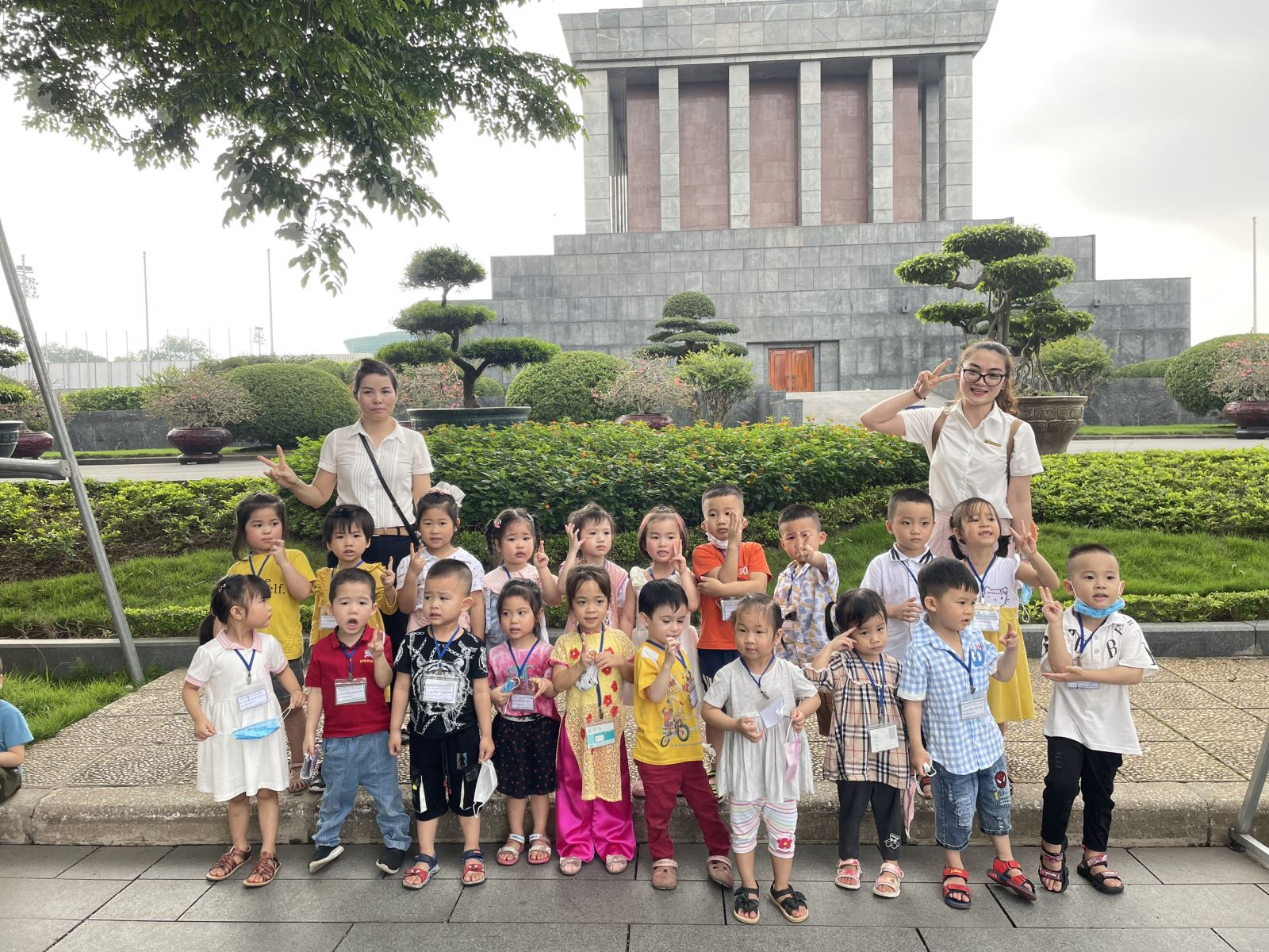 Từ sáng sớm, các bé đã nô nức đến trường thật sớm để chuẩn bị. Bắt đầu 8h00 xe chuyển bánh và 9h00 các bạn nhỏ đã đến được điểm thăm quan đầu tiên là Lăng Bác. Các bạn nhỏ đều rất háo hức và vui mừng được đến thăm lăng bác. Bạn nào bạn đấy đến xếp hàng ngay ngắn lần lượt vào thăm lăng Bác. Qua lời kể của cô giáo, của bố mẹ bạn nào cũng yêu quý Bác Hồ nên vào lăng rất trang nghiêm và giữ trật tự.