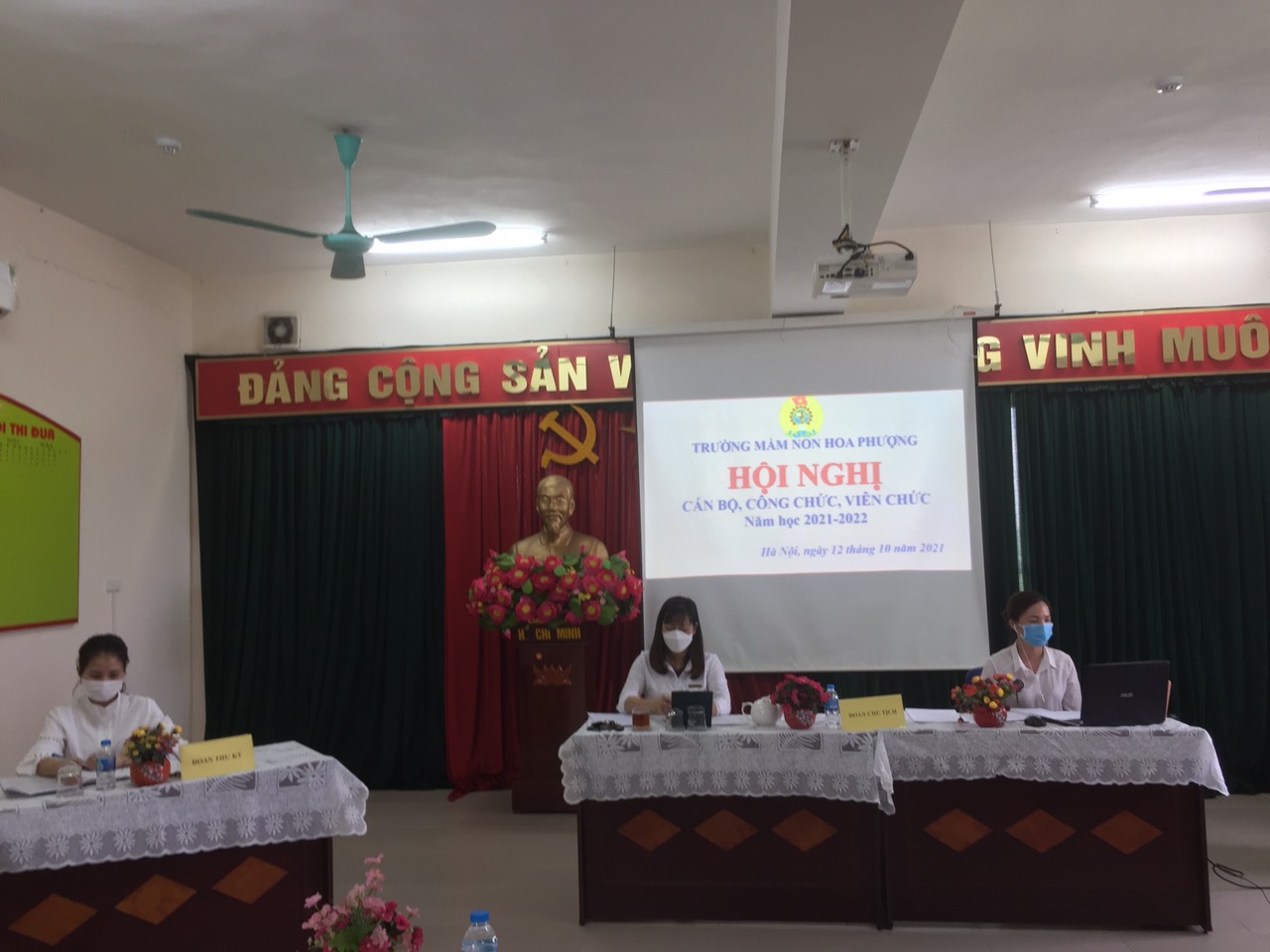 Đại biểu nhà trường có Đ/c Lê Thị Mỹ Hạnh – Bí thư Chi bộ - Hiệu trưởng nhà trường, các đồng chí trong Ban giám hiệu cùng toàn thể cán bộ, viên chức, người lao động trường MN Hoa Phượng.