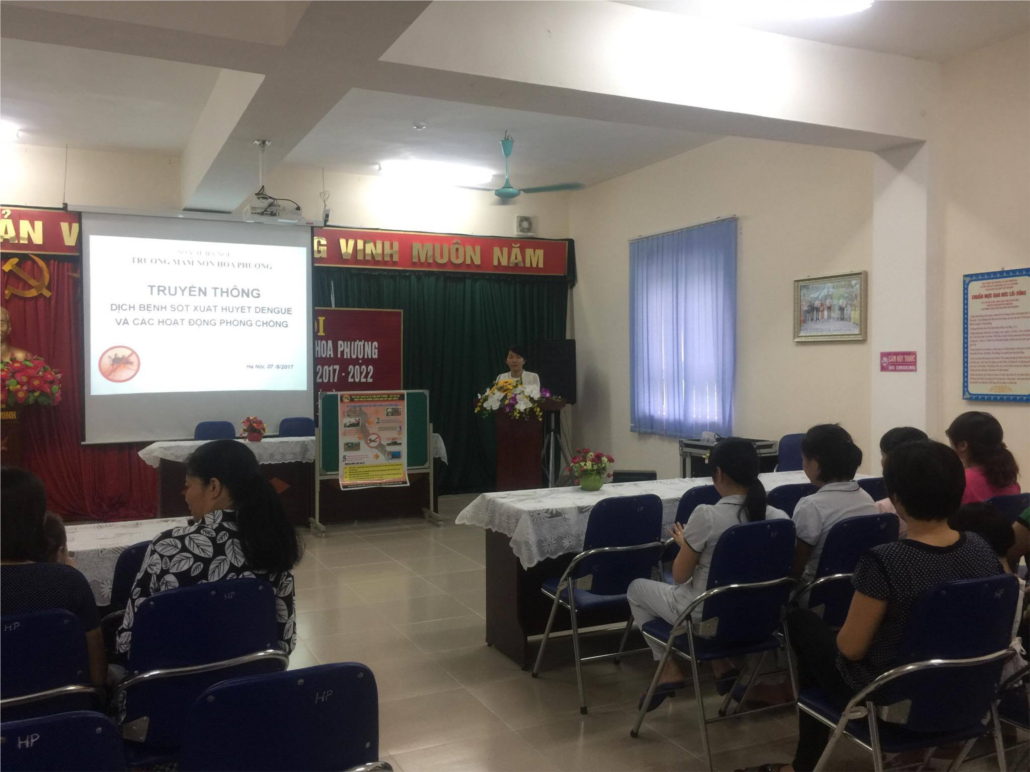 Trước diễn biến của dịch bệnh sốt xuất huyết ngày càng phực tạp và lan rộng, Chiều ngày 15/8/2017, trường MN Hoa Phượng đã tổ chức buổi truyền thông về Bệnh sốt xuất huyết cho toàn bộ CBGVNV và phụ huynh trong nhà trường để phụ huynh và giáo viên có kiến thức về bệnh sốt xuất huyết.
